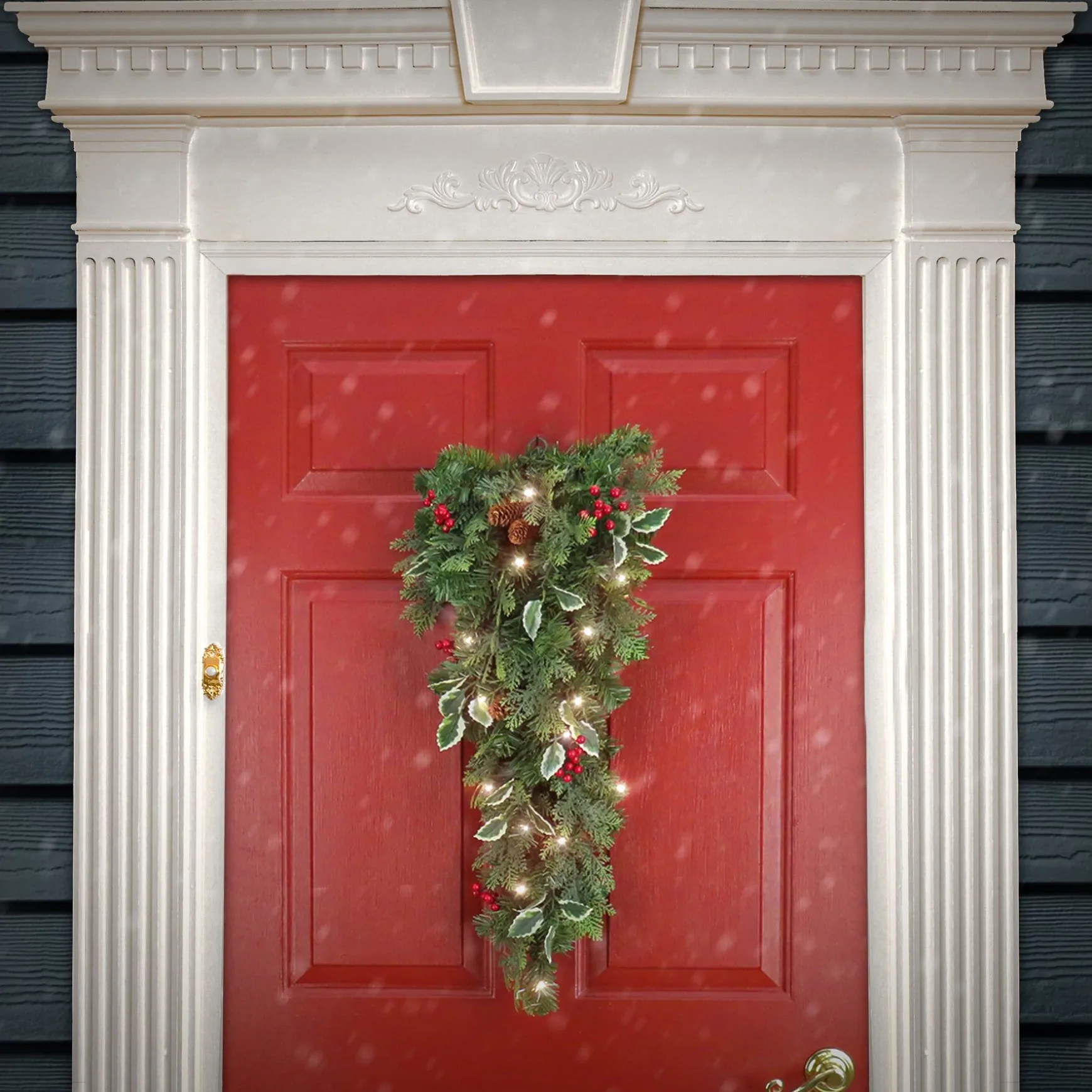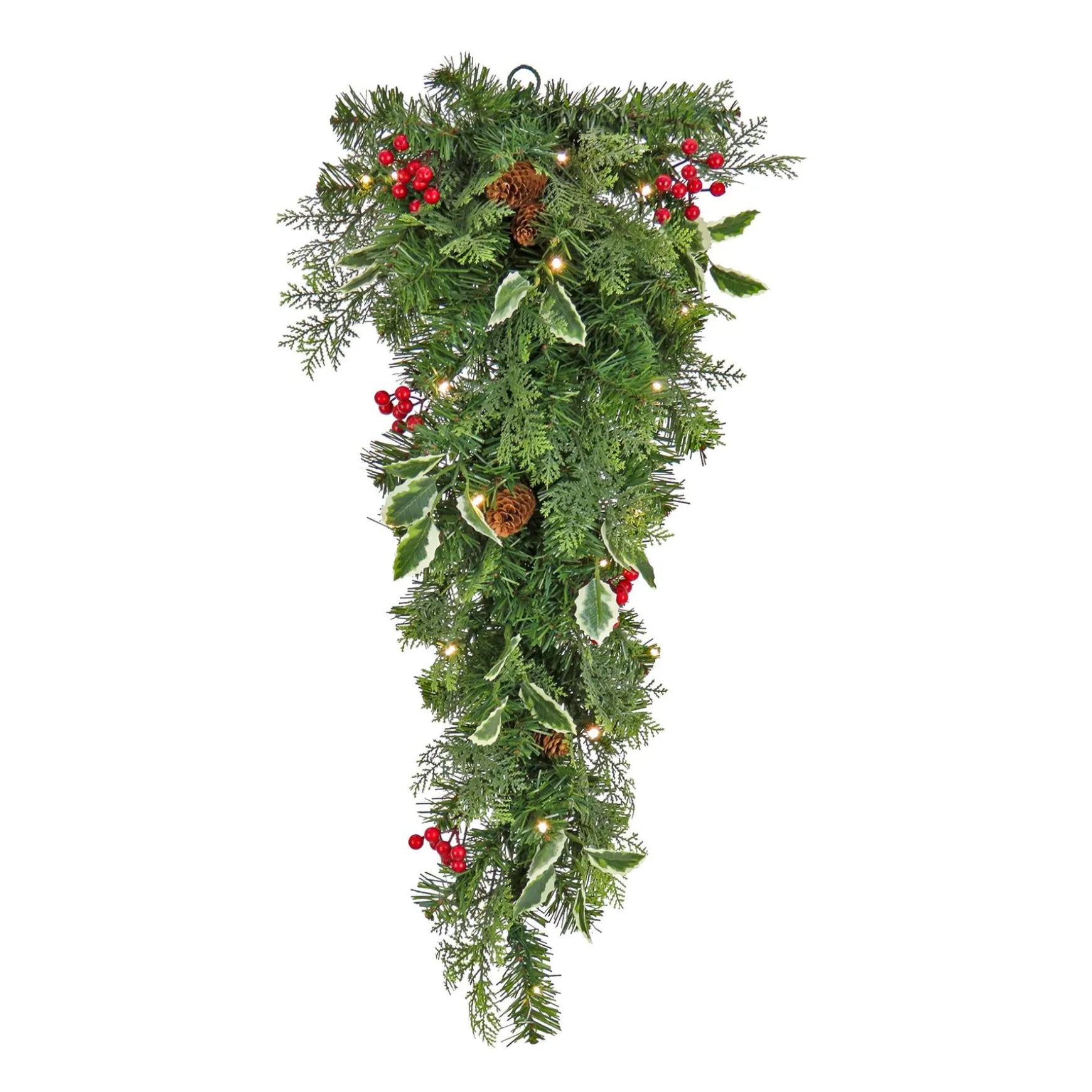 This Swag Features A Mixture Of Evergreen And Cedar Branch Tips And Is Trimmed With Red Berry Clusters, Pinecones, And Holly Leaves. It Is Pre-Strung With 20 Battery-Operated Warm White Led Lights That Are Energy-Efficient And Long Lasting. 6 Hours On/18