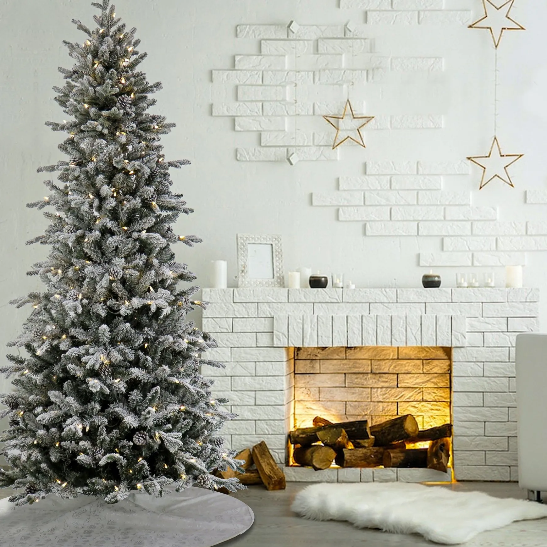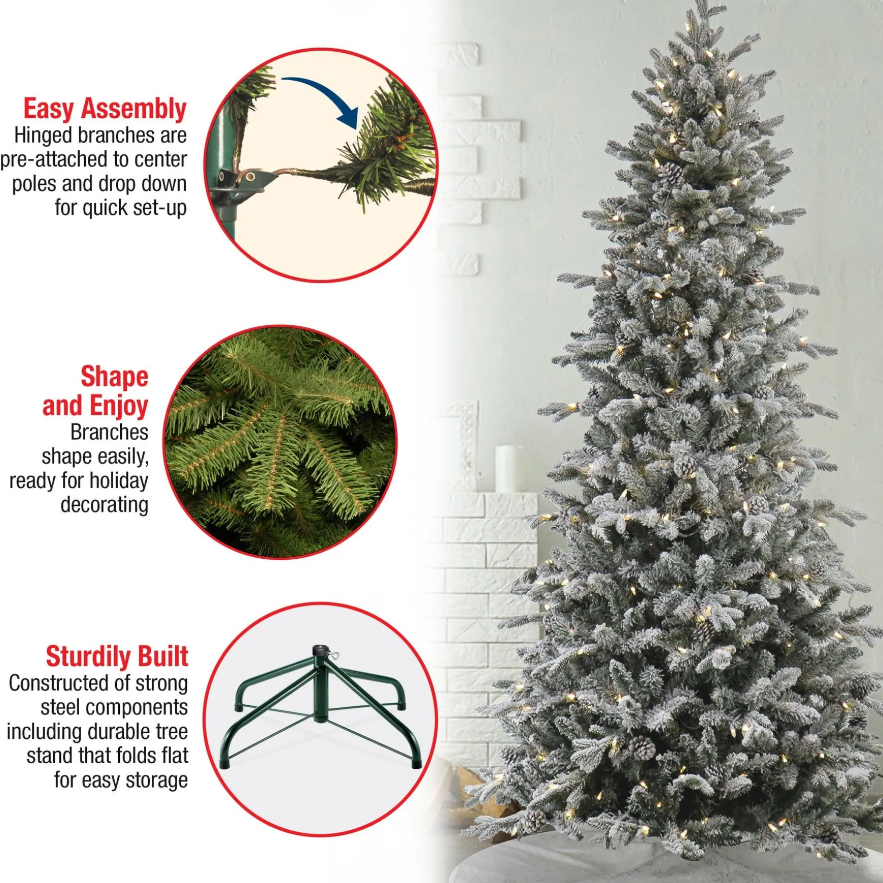 The Snowy Calton Pine Tree Features Feel RealĀ® Branch Tip Technology, Creating A Tree With Remarkable Realism. These Crush-Resistant Branch Tips Are Molded From Real Tree Branches For An Authentic Living Tree Appearance. This Tree Is Trimmed With Pinecones And Dusted With The Look Of Freshly Fallen Snow. It Also Offers A Slim Profile Making It A Great Choice For Display In Corners Or Rooms With Limited Floor Space. It Is Pre-Strung With 350 Warm White Led Lights That Are Long Lasting And Energy Efficient. This Three-Section Tree Is Designed With Hinged Branches For Ease Of Assembly. Sturdy Folding Metal Tree Stand Is Included.