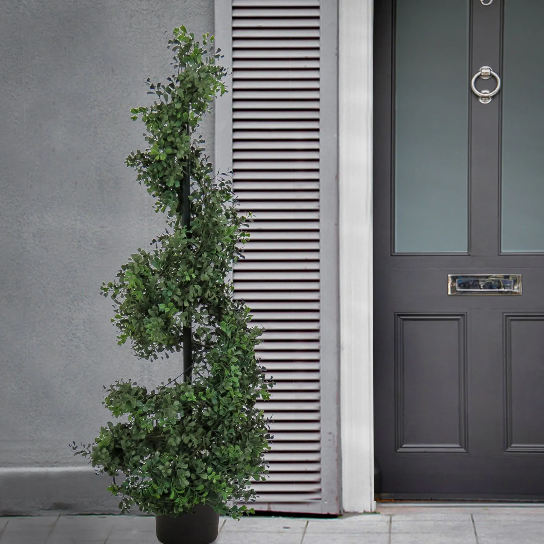 Add An Attractive Splash Of Greenery To Areas In Or Around Your Home With This Artificial Boxwood Spiral Shape Topiary. Featuring Thick Groups Of Life-Like Branches, It Is Firmly Seated In A Sturdy Matte Black Nursery Pot. This Tree Appears To Be Living Yet Requires None Of The Maintenance, Water, Or Sunlight Of A Living Plant. Display Along Walkways, On Porch, Patio, Or Entranceways. For Indoor Or Outdoor Use.