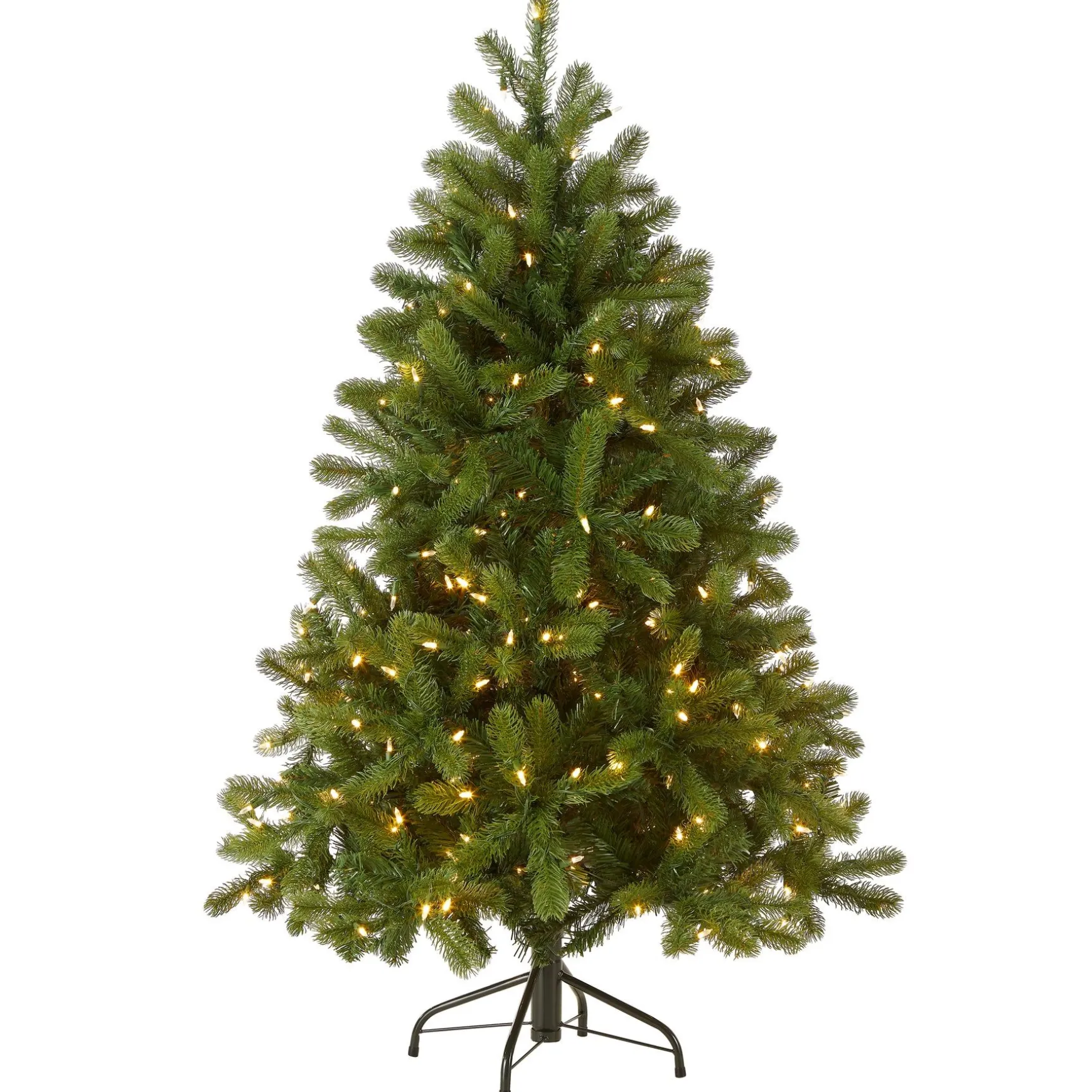 - This Downswept Douglas Fir Full Pre-Lit Artificial Green Christmas Tree Is 4.5 Feet Tall With A 38 Inch Base Diameter. Featuring Hundreds Of ‘Feel Real’ Individually Crafted Branch Tips To Create Full Bodied Branches, This Tree Is Designed To Look And Fee