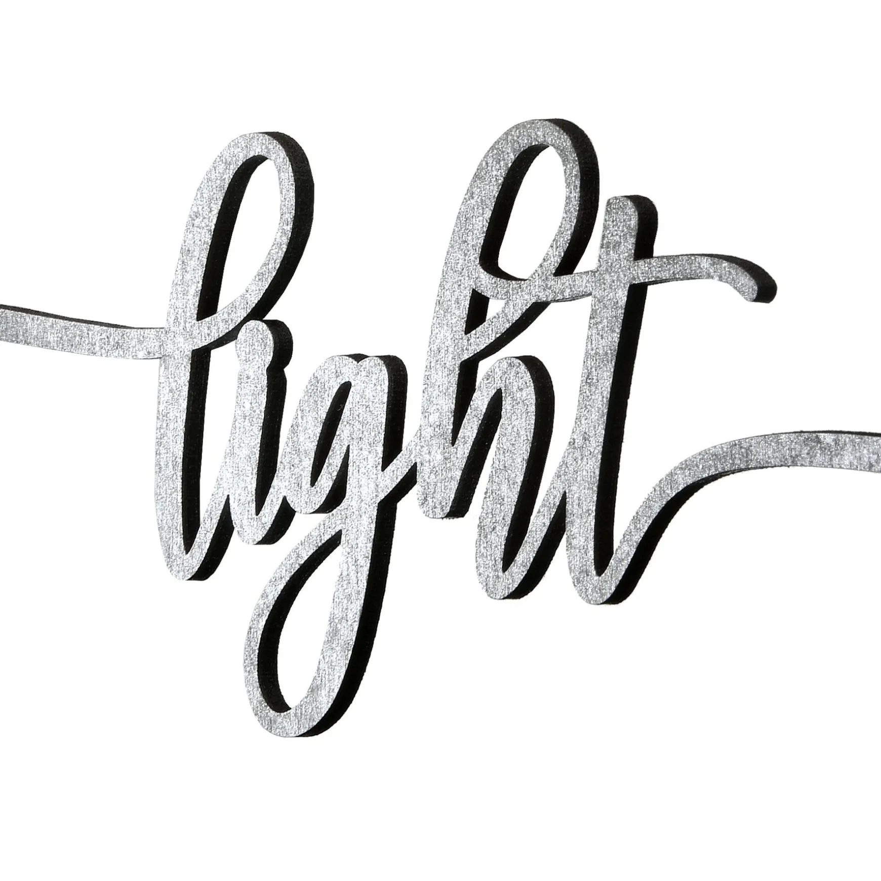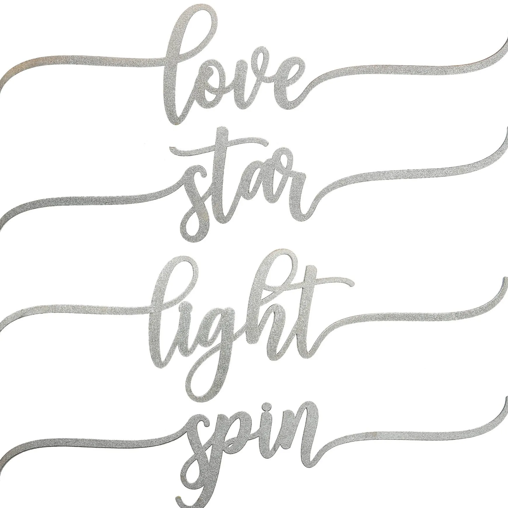 - These Fantastically Festive Decorative Place Settings Features “Love”, “Star”, “Light” And “Spin” In Shiny Silver Curly Script Lettering