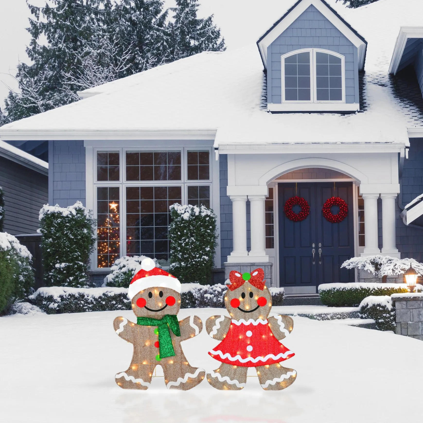 This Colorful Holiday Decoration Is Made With Reinforced Fabric Material Wrapped Around Wire Frames Creating A Strong And Durable Holiday Trimming. Each Gingerbread Cookie Character Has A Wide Smile, The Girl Wearing A Red Dress And Bow, And The Boy In Red Cap And Bright Green Scarf. Pieces Are Lit From Behind With 80 Total Warm White Leds Lights That Make Each Sparkle And Shine. For Display In Indoor Or Outdoor Locations.