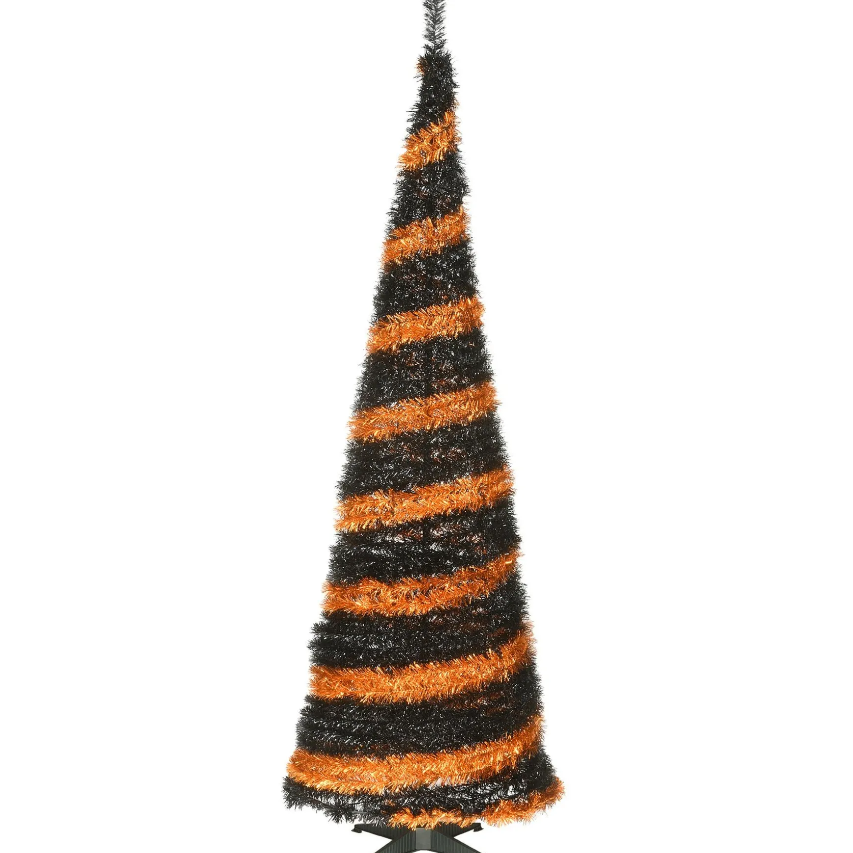 - Includes One 7.5 Foot Tall Tinsel Tree With A Slim Profile That Makes It Easy To Fit Into Areas With Limited Floor Space And Features Orange And Black Branches.