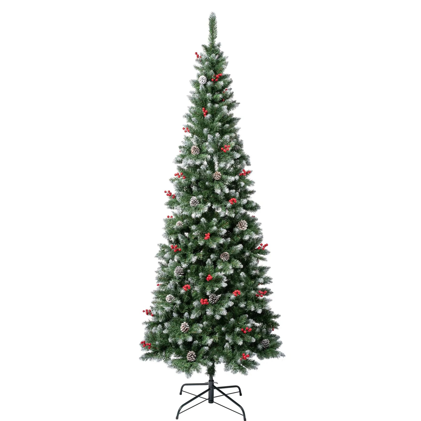 - Create New Christmas Memories With The Cullen Slim Hinged Tree. Trimmed With Berries And Pinecones, This Tree Exuberates Holiday Cheer. This 7.5Ft Slim Silhouette Tree Is Perfect For Rooms With Limited Space. Features Pre-Attached Hinged Branches For Easy Assembly. Welcome In The Holidays With This Festive Tree.