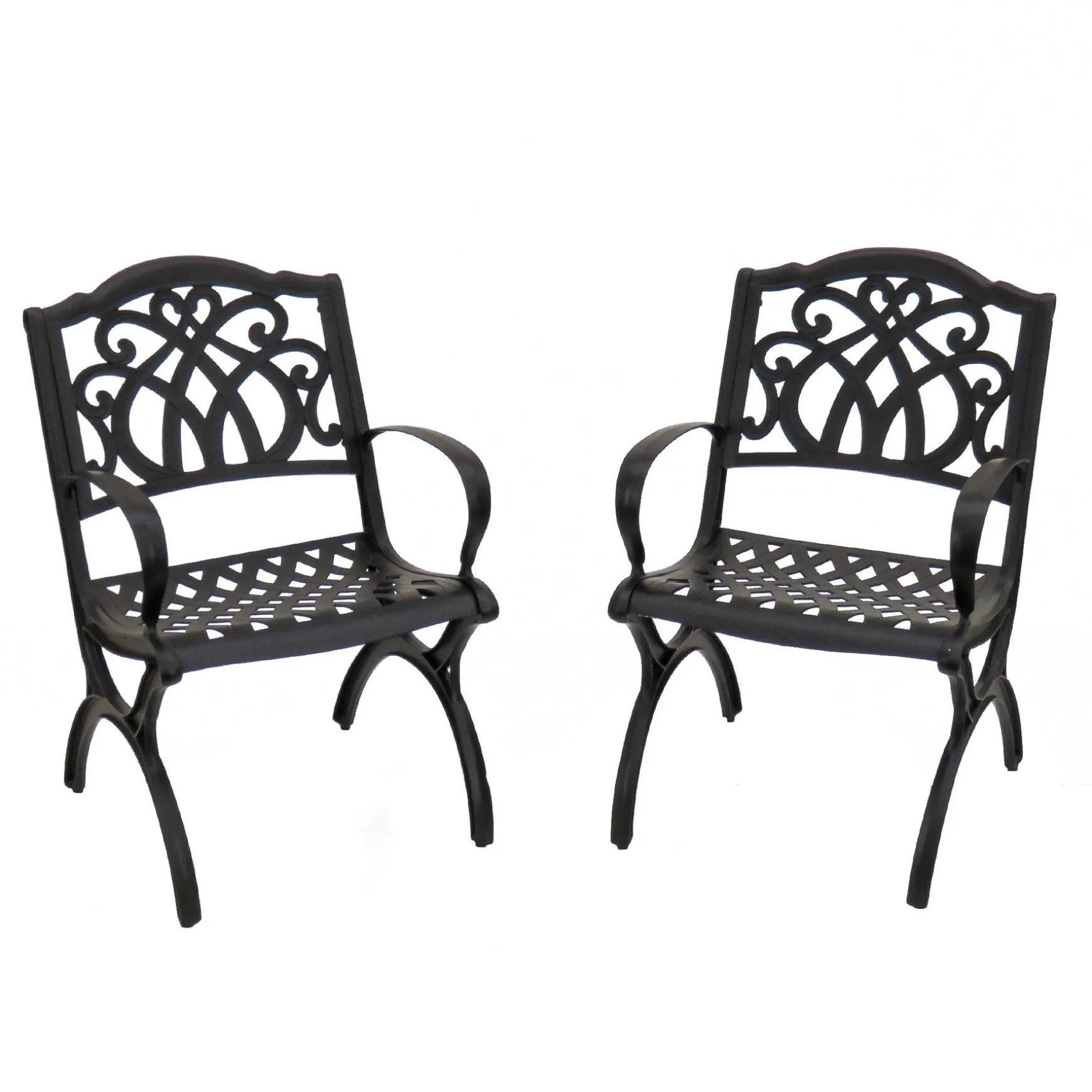 - Designed With High Strength Cast Aluminum That Is Long Lasting, All Weather And Rust Resistant, These Two Outdoor Chairs Feature A Charcoal Color Finish And Armrests For Added Comfort