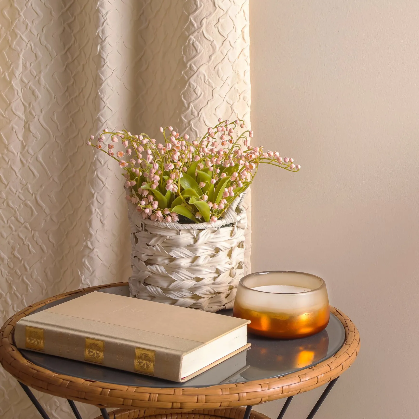 Long, Curling Stems Of Light Pink Lily-Of-The-Valley Flowers And Thick Green Leaves Rise From A White Basket With A Wide Weave And Two Loop Handles. The Flowers Are Seated In A Simulated Soil Surface. Add A Spray Of Nature’S Colors To Tabletop Trimmings With These Attractive Artificial Flowers That Are Remarkably Life-Like Yet Maintenance-Free. For Decorative Indoor Display.