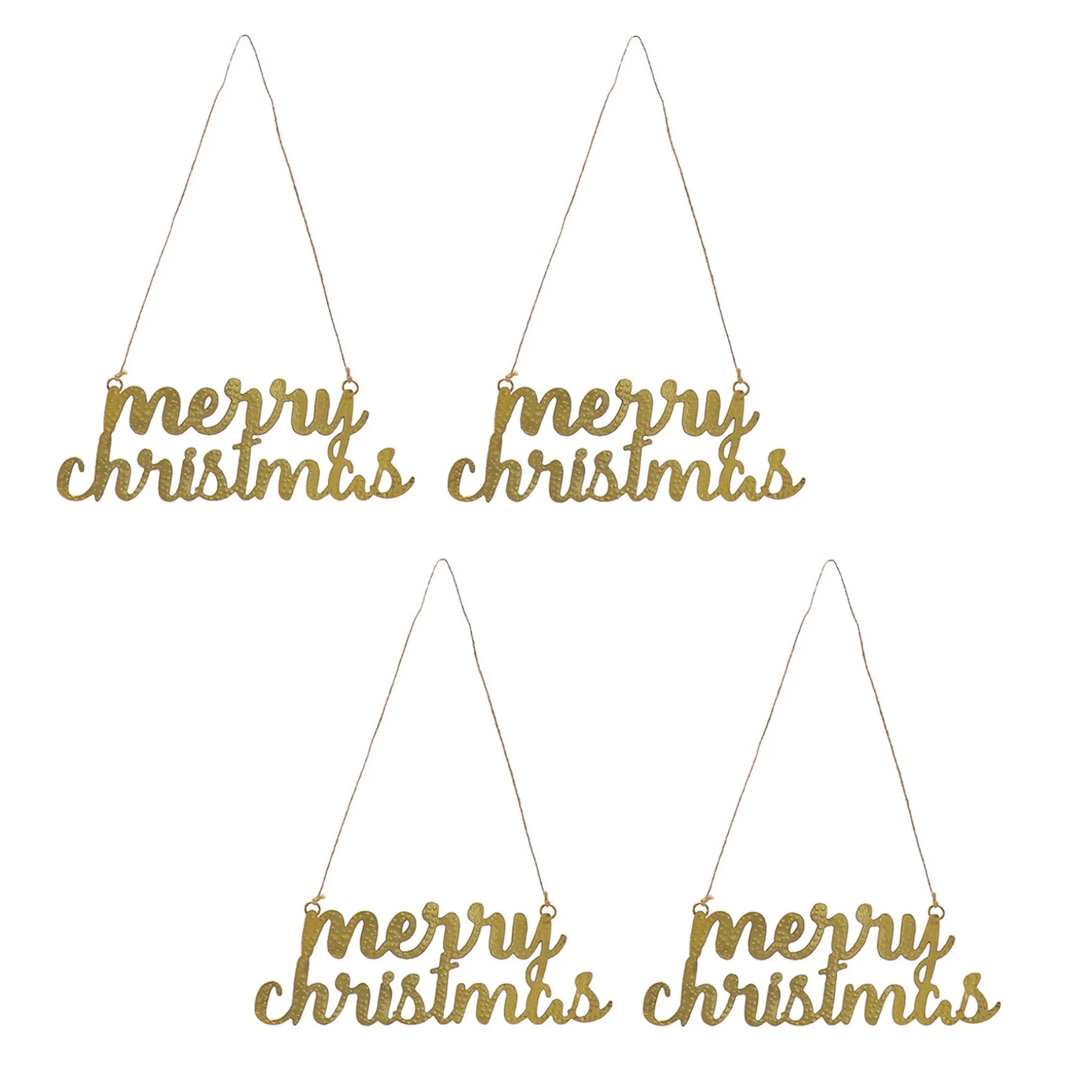 Add A Twist To Traditional Christmas Trimmings With This Set Of Unique Hanging Ornaments. Constructed Of Thin Metal In A Mottled Gold Finish, The Sentiment “Merry Christmas” Is Written In Flowing Script Letters. These Fun Decorative Ornaments Can Be Hung On The Tree, Door, Wall, Or Window To Make A Spirited Seasonal Announcement. For Indoor Use.