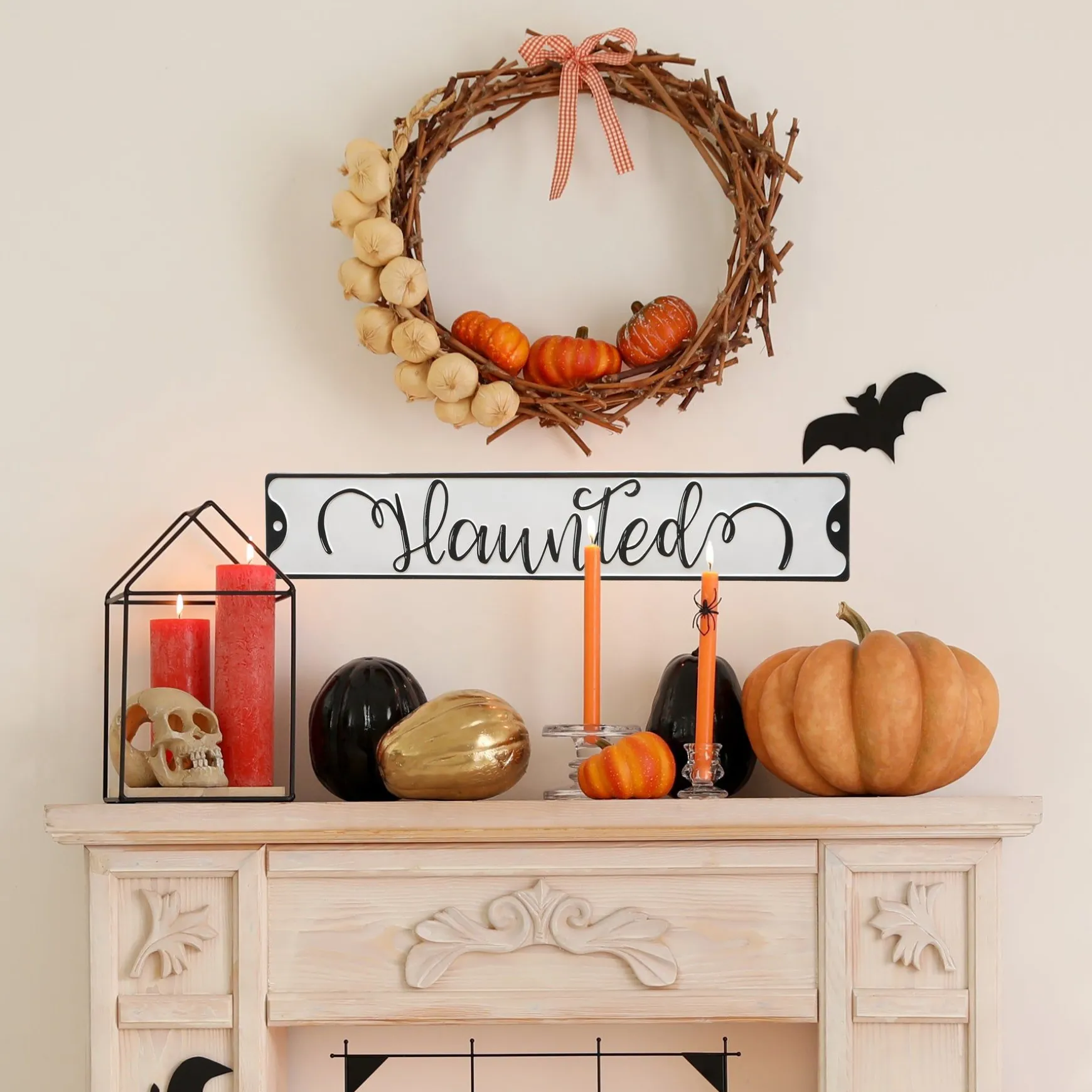 Transform Your Home Into The Scariest House In The Neighborhood With National Tree Company’S Haunted Wall Sign Decoration. This 38 Inch Metal Plaque Features The Word ‘Haunted’ In Cursive Font. Constructed With Durable Metal Materials, This Decorative Pie