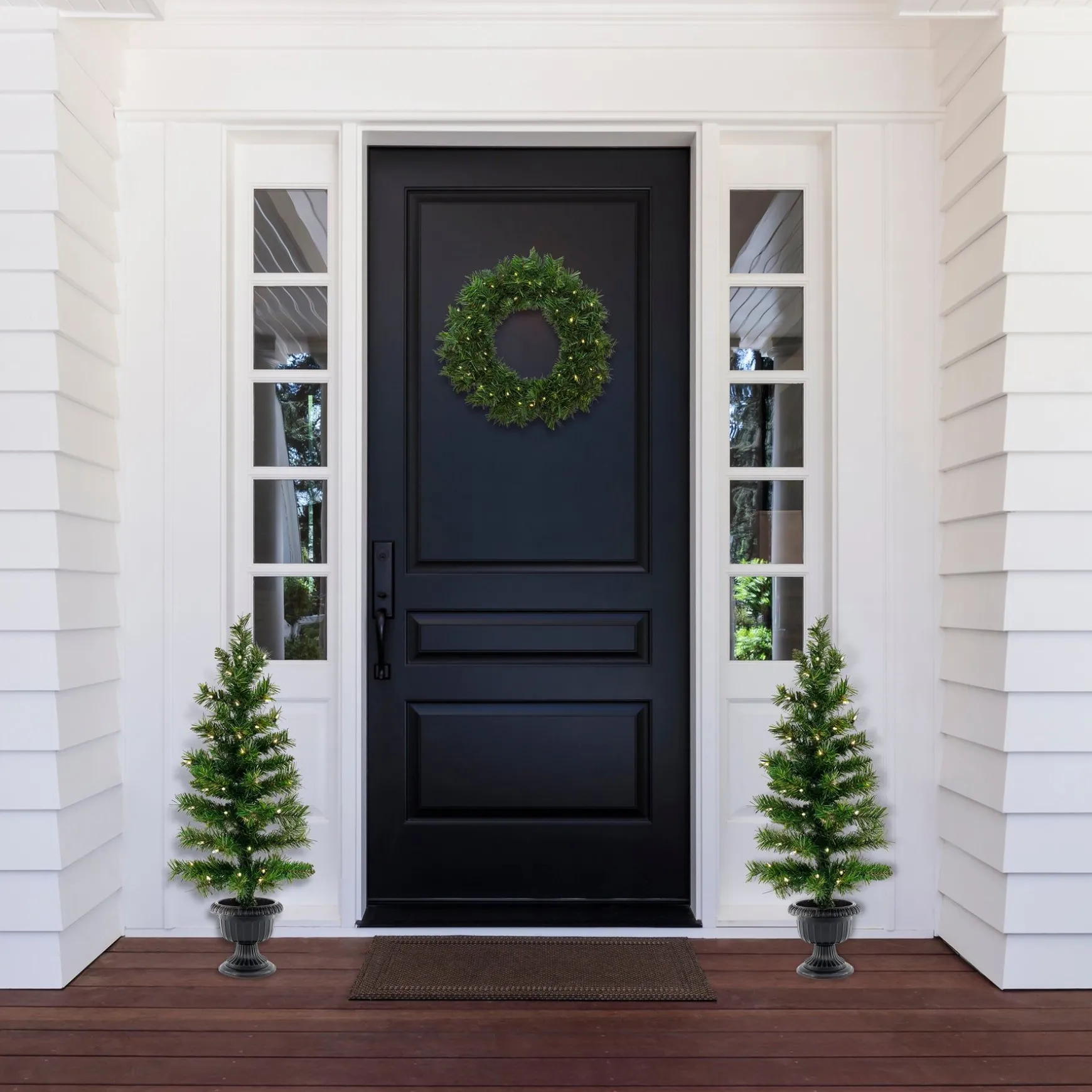 - Two 3 Ft. Entrance Trees Pre-Lit With 50 Clear Lights