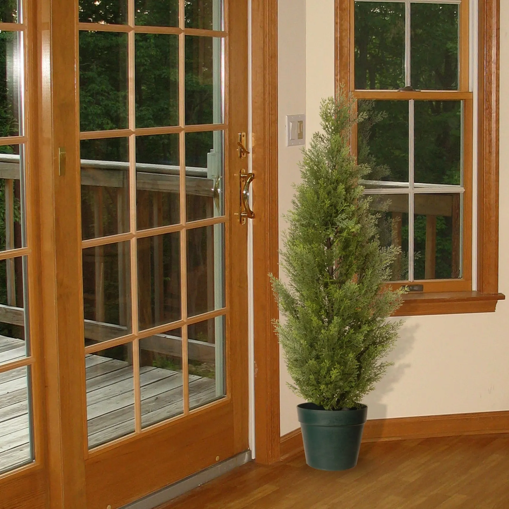 Popular With Landscapers, An Arborvitae Tree Is Always A Welcome Topiary For Display Around The Home. This Realistic Yet Artificial Topiary In Round Growers Pot Is Maintenance-Free, No Need For Water, Soil Or Sun. It Will Add A Touch Of Greenery To Porch, Patio Or Entranceways.