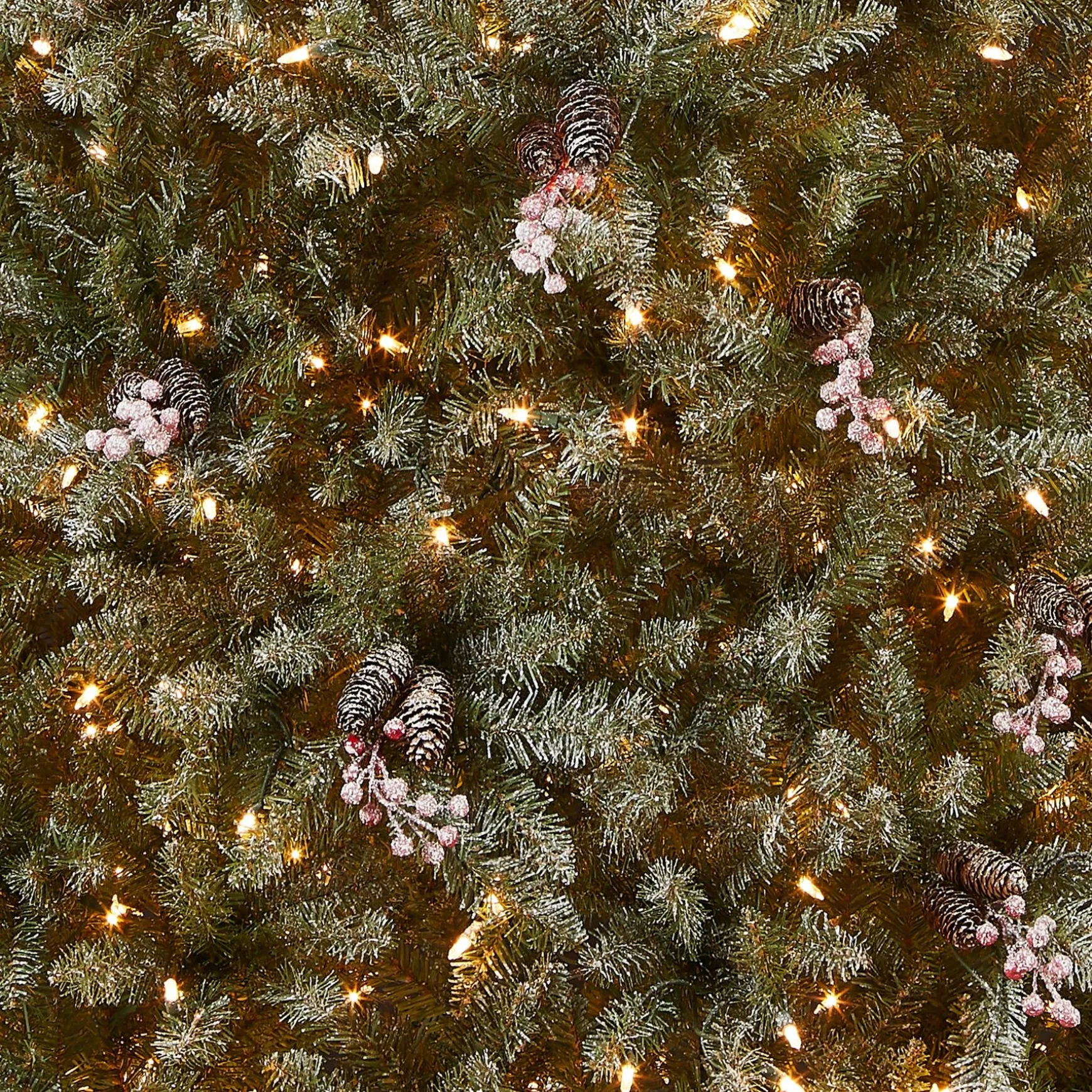 The Dunhill Fir Tree Features Snow Sprinkled Branch Tips And Is Trimmed With Clusters Of Red Berries And Pinecones. It Is Pre-Strung With 700 Clear Lights That Remain Lit Even If A Bulb Burns Out. This Three Section Tree Features Hinged Branches For Ease Of Assembly. Sturdy Folding Metal Tree Stand Is Included.