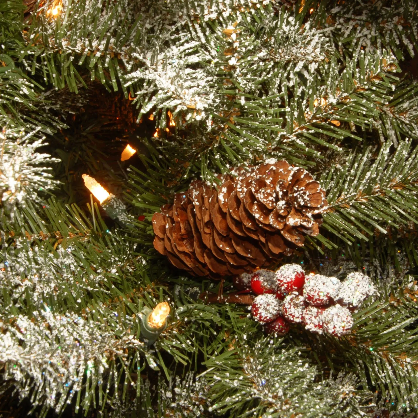 The Dunhill Fir Is A Slim Profile Tree That Is Great For Display In Corners, Small Rooms And Areas With Limited Space. It Is Pre-Strung With 600 Clear Lights That Remain Lit Even If A Bulb Burns Out And Is Trimmed With Pine Cones, Red Berries And Snow. This Three Section Tree Features Hinged Branches For Ease Of Assembly. Sturdy Folding Metal Tree Stand Is Included.